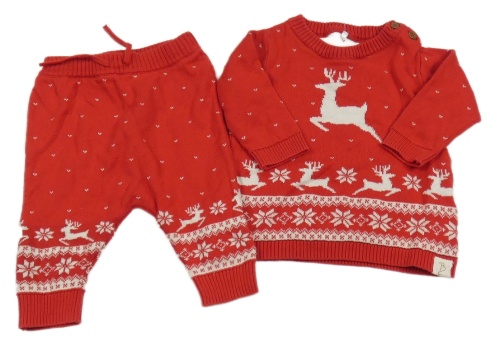 • 2set - Červeno-bílý vánoční svetr se sobem a norským vzorem + červeno-bílé vzorované pletené tepláky George