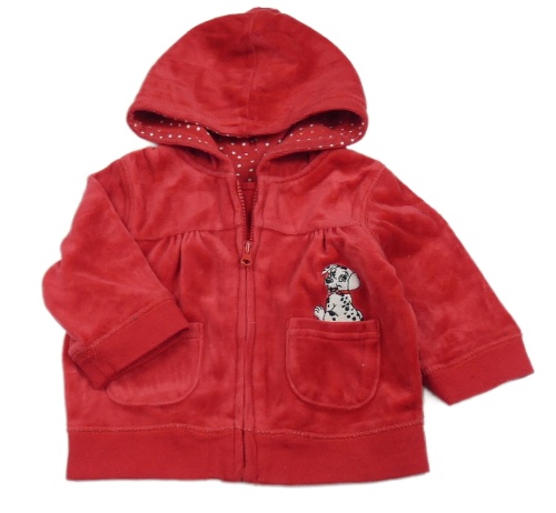 Červená sametová propínací mikina s dalmatinem a kapucí George