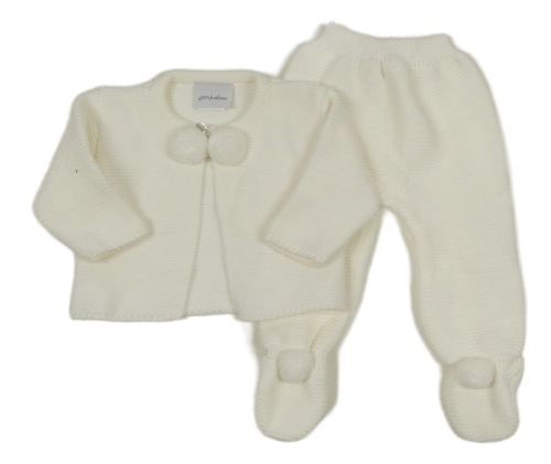 2set - Bílý propínací svetr s bambulkami + polodupky