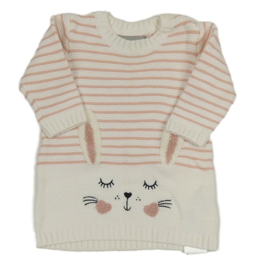 Bílo-růžové pruhované svetrové šaty s králíčkem Primark