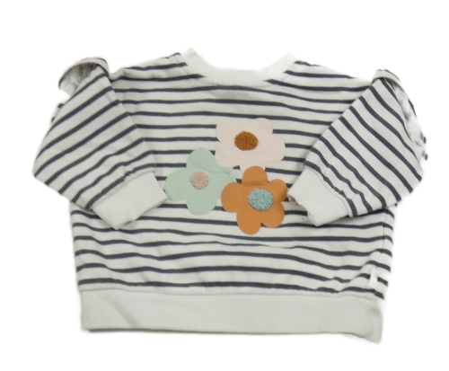 Bílo-antracitová pruhovaná mikina s květy a volánky