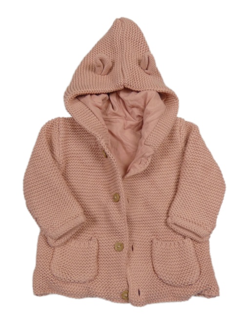 Pudrový propínací podšitý svetr s kapucí s oušky George