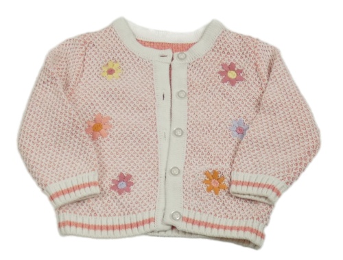 Růžovo-bílý vzorovaný propínací svetr s výšivkami květů Nutmeg