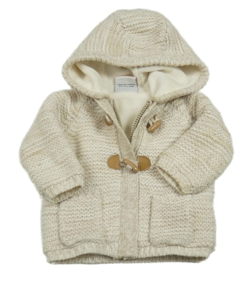 Béžový melírovaný zateplený propínací svetr s kapucí Topomini