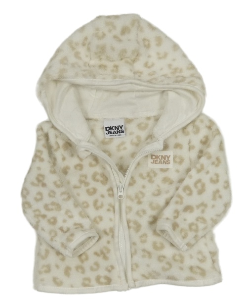 Bílo-béžová chlupatá propínací mikina s kapucí DKNY
