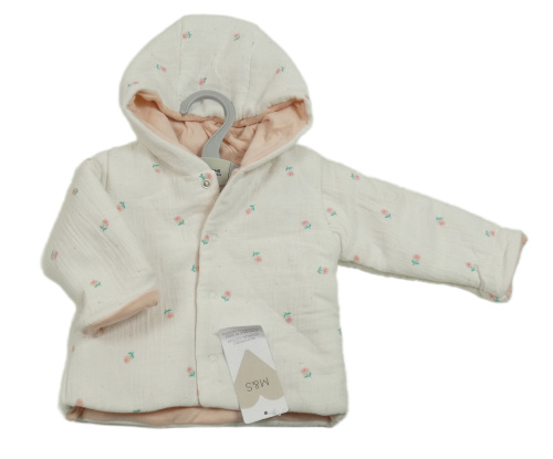 Nové - Bílá květinová zateplená propínací mikina s kapucí M&S