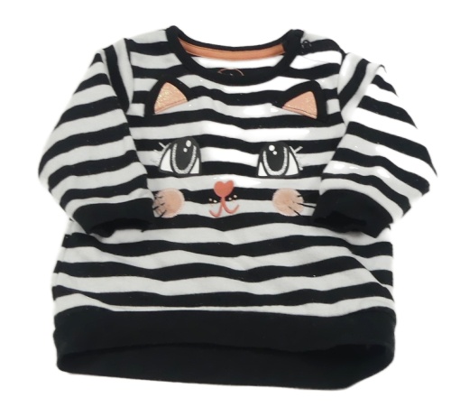 Černo-bílá pruhovaná mikina s kočkou C&A
