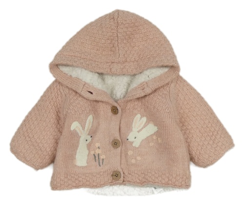 Růžový třpytivý propínací zateplený svetr se zajíčky a kapucí Nutmeg