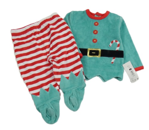 • Nové - Zelená sametová mikina + červeno/bílé pruhované polodupky - elf St. Bernard