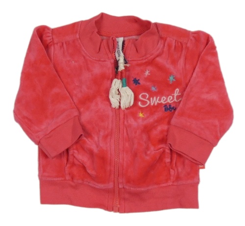Růžová sametová propínací mikina s nápisem a hvězdami