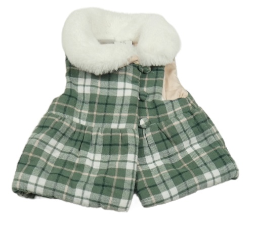 Zeleno-bílá kostkovaná flanelová zateplená vesta