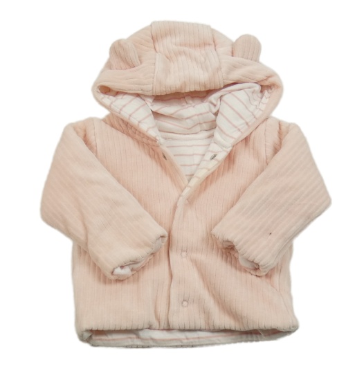 Světlerůžová sametová žebrovaná zateplená propínací mikina s kapucí M&S