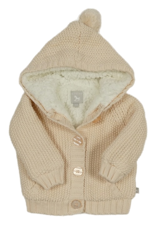 Meruňkový zateplený propínací svetr s kapucí s bambulí
