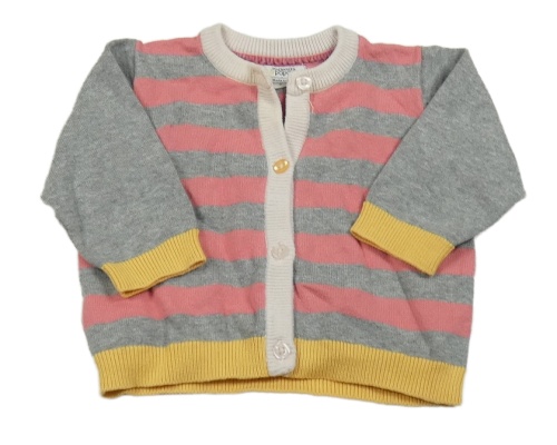 Šedo-růžovo-žlutý pruhovaný propínací svetr Mamas&Papas