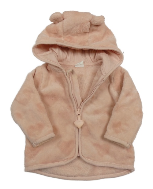 Růžová chlupatá propínací mikina se srdíčky a kapucí H&M