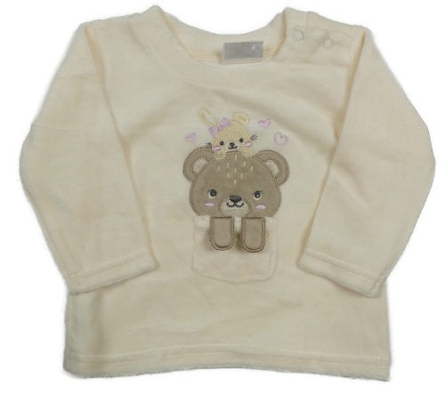 Smetanová sametová mikina s medvídkem a zajíčkem a kapsou orsolino