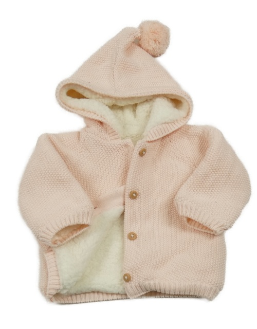 Světlerůžový zateplený propínací svetr s kapucí s bambulí Matalan