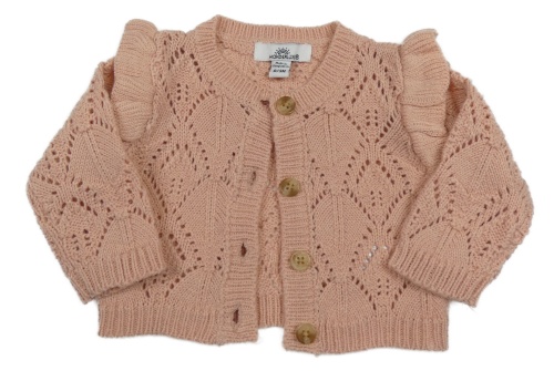 Světlerůžový propínací svetr s dirkovaným vzorem