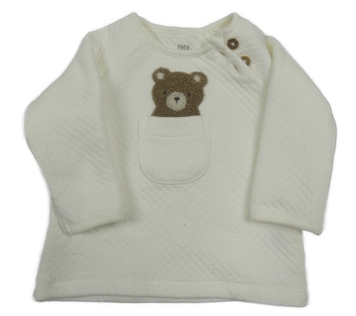 Bílá vzorovaná vyteplená mikina s medvídkem a kapsou F&F