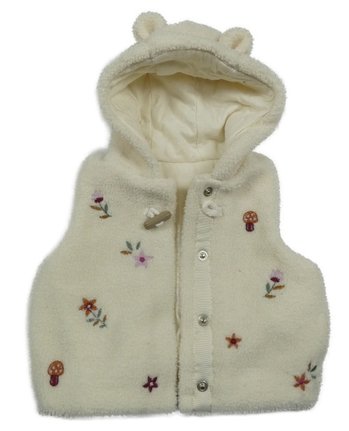 Smetanová huňatá podšitá vesta s kytičkami a kapucí Nutmeg