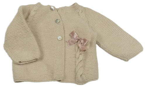 Béžový propínací svetr s mašlí