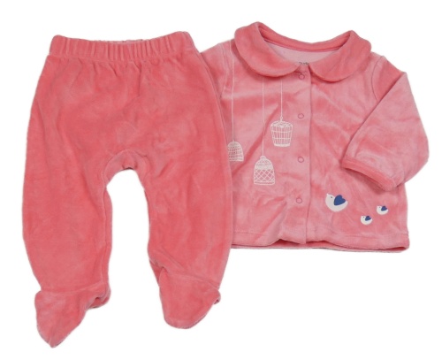 2Set - Růžová sametová propínací mikina s ptáčky a límečkem + polodupky Vertbaudet