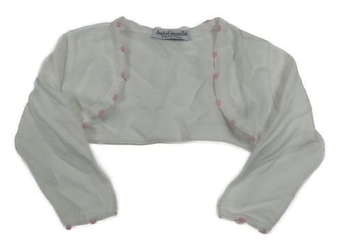 Bílé pletené bolérko s růžovými puntíky baby Graziella