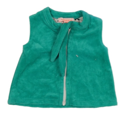Zelená žebrovaná sametová propínací vesta s vázáním