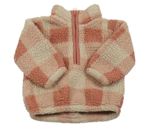 Růžovo-smetanová kostkovaná huňatá mikina Carter's