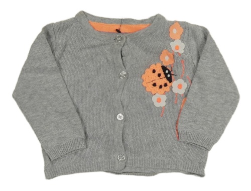 Šedý melírovaný propínací svetr s beruškou a květy
