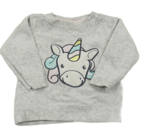 Světlešedá melírovaná sametová mikina s jednorožcem dopodopo