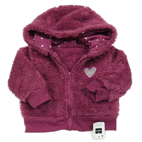 Nové - Vínová třpytivá chlupatá propínací mikina se srdcem z flitrů a kapucí Dunnes