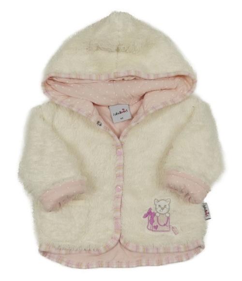 Smetanová chlupatá podšitá propínací mikina s kočkou a kapucí