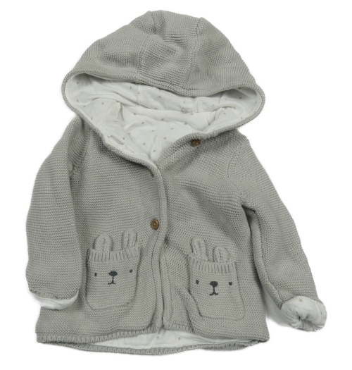 Šedý podšitý propínací svetr s kapsami s králíky a kapucí Tu