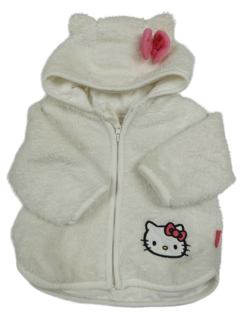 Bílá plyšová propínací mikina s Hello kitty a kapucí s mašlí H&M