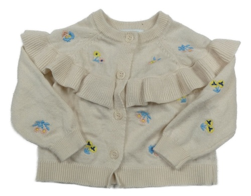 Béžový květovaný propínací svetr s volánkem