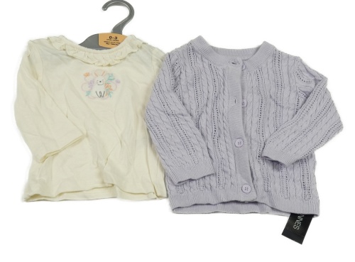Nové - 2Set - Levandulový vzorovaný propínací svetr + smetanové triko s králíčkem a volánkem St. Bernard