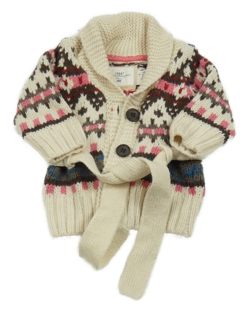 Béžovo-růžovo-hnědý vzorovaný vlněný propínací svetr s páskem H&M