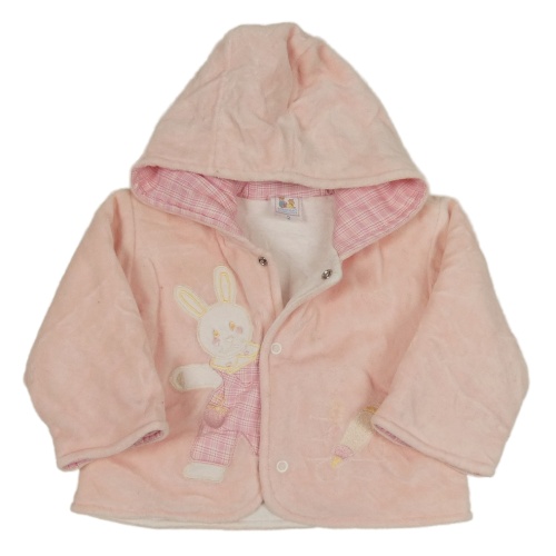Světlerůžová sametová podšitá propínací mikina s králíkem a kapucí
