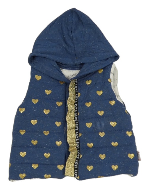 Modro-zlatá tepláková zateplená vesta se srdíčky a kapucí