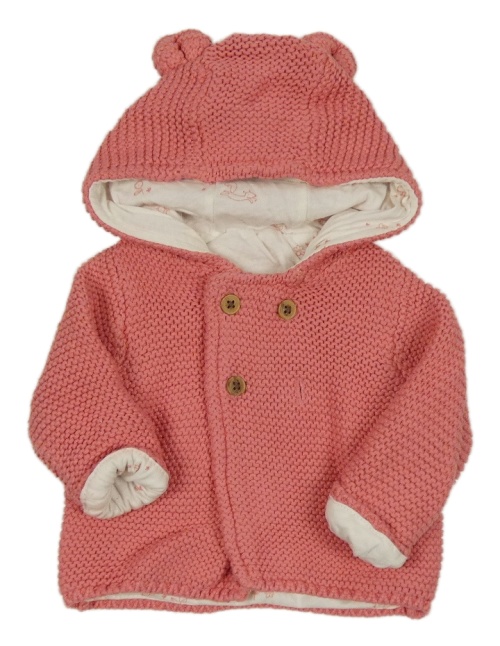 Růžový propínací podšitý svetr s kapucí s oušky M&S