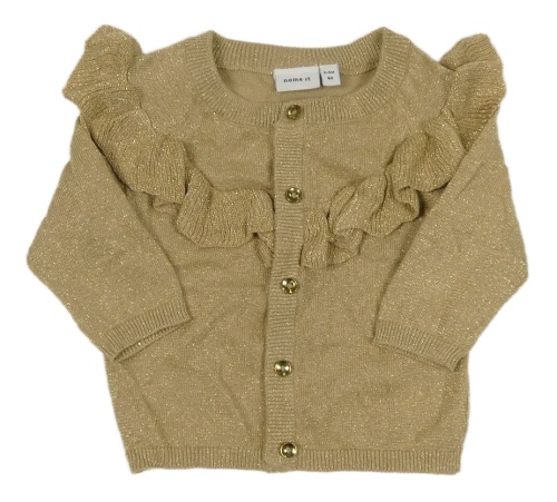 Béžovo-zlatý melírovaný propínací svetr s volánky name it.