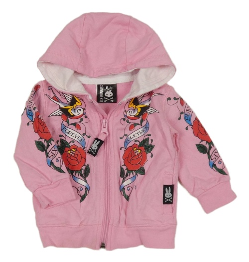 Světlerůžová propínací mikina s potiskem a kapucí Six Bunnies