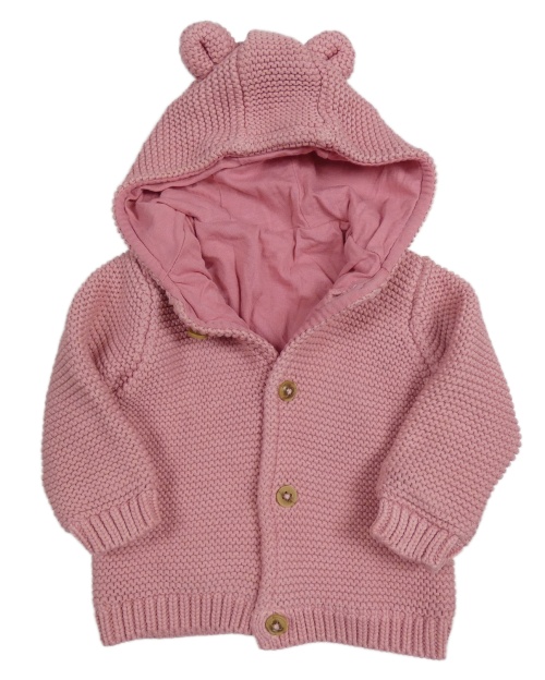 Růžový propínací podšitý svetr s kapucí s oušky M&S