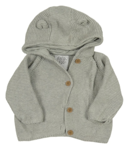 Šedý melírovaný propínací svetr s kapucí s oušky F&F