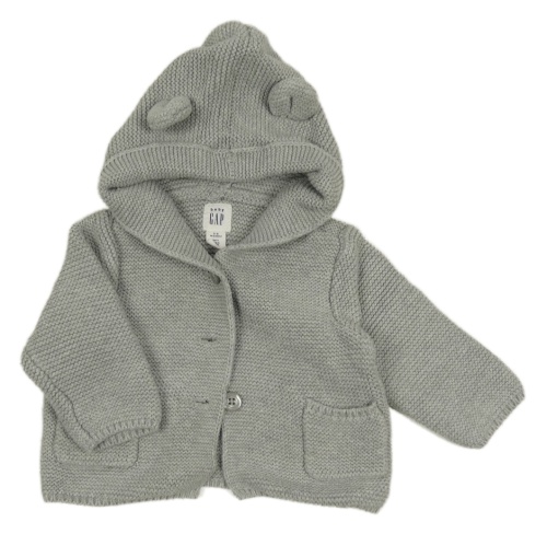 Šedý melírovaný propínací svetr s kapucí s oušky GAP