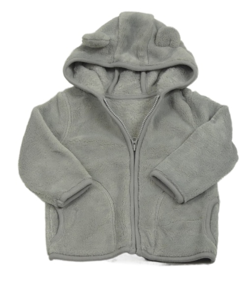 Šedá chlupatá propínací mikina s kapucí s oušky