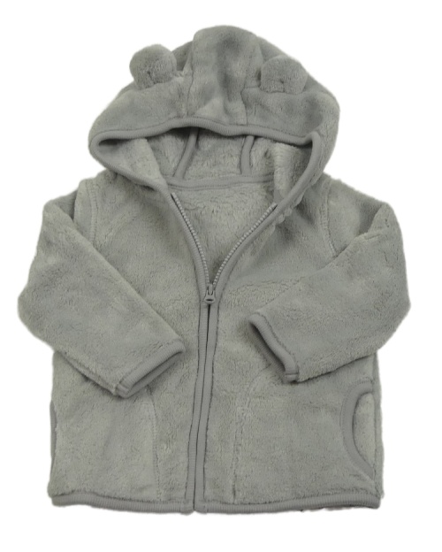 Šedá chlupatá propínací mikina s kapucí s oušky