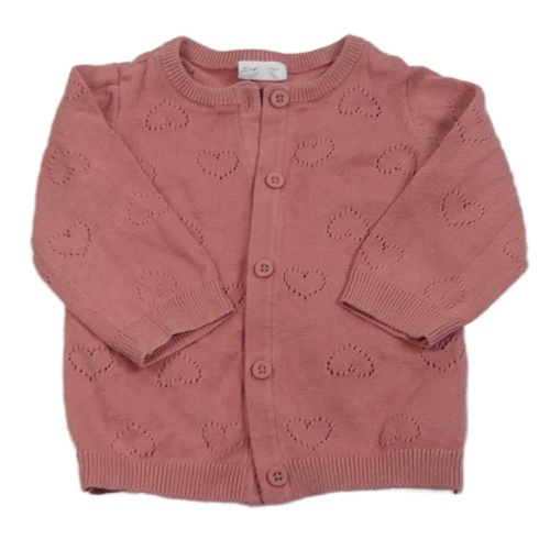 Starorůžový propínací svetr s perforovanými srdíčky F&F