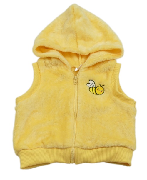 Žlutá chlupatá propínací vesta s včelkou a kapucí